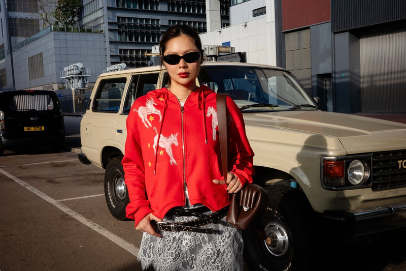 ( NAVY / RED ) ASYMMETRIC HORSES STAR ZIP UP HOODED JACKET ⭐️BEST BUY⭐️ *LAST ONE*