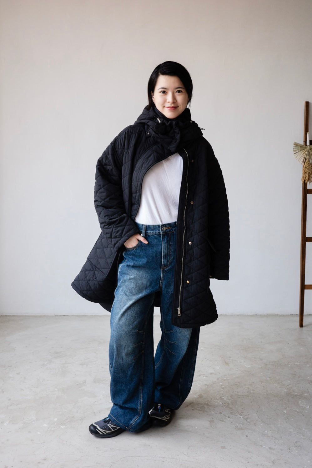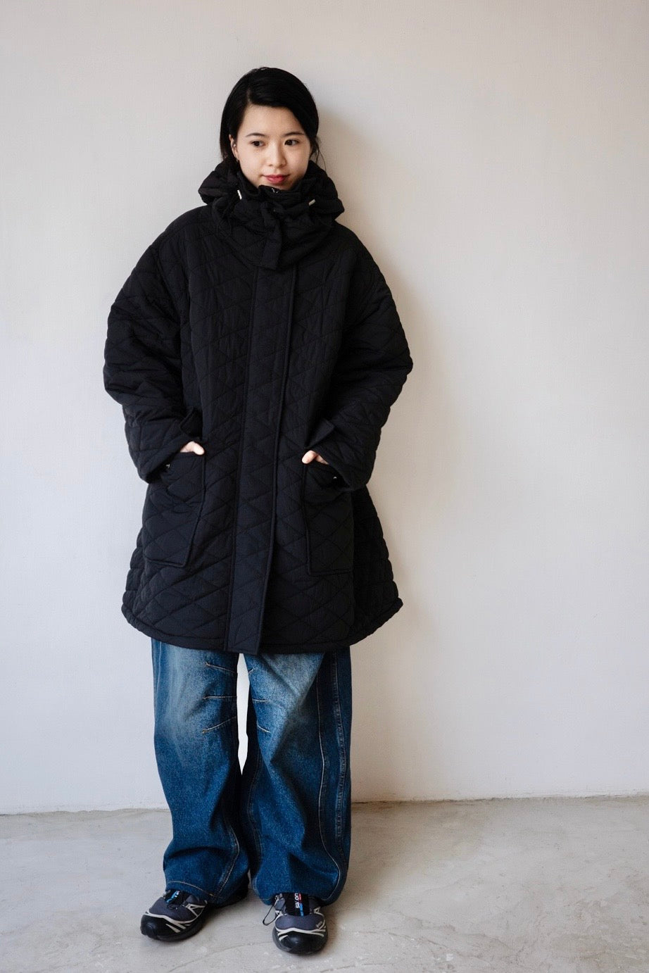 ( YELLOW / BLACK ) QUILTED HOODED JACKET